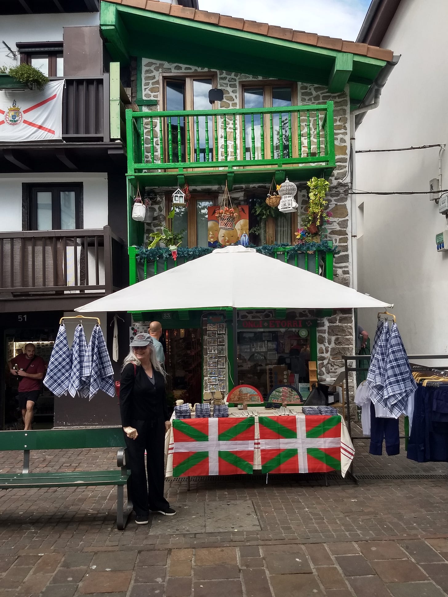 We began strolling the medieval cobblestone streets. I was struck by the number of Basque flags fastened to wrought-iron balconies everywhere. I knew the Basque people are famous for being independent and patriotic, but this was quite a statement. Then we learned there had been a festival the day before and another would take place the following day. (Our Portuguese buddies had wisely chosen the in-between time so it would not be crazy crowded or difficult to find parking.)