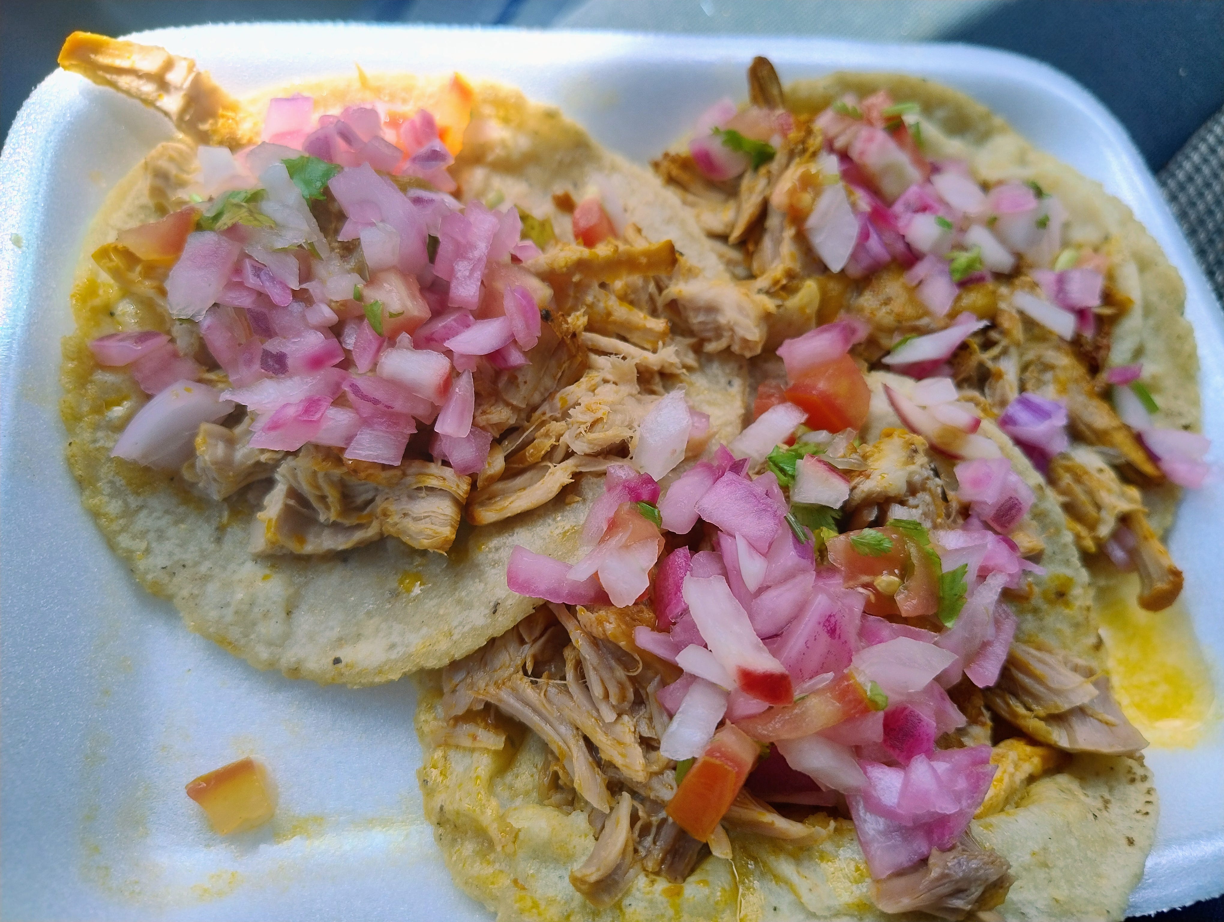 I knew what I wanted before I arrived: three tacos, cochinita pibil. This beloved traditional dish, native to the Yucatán Peninsula, is slow-cooked pork marinated in citrus juice and spices. Traditionally, the meat is wrapped in banana leaves and buried in a pit lined with hot stones (the pib).